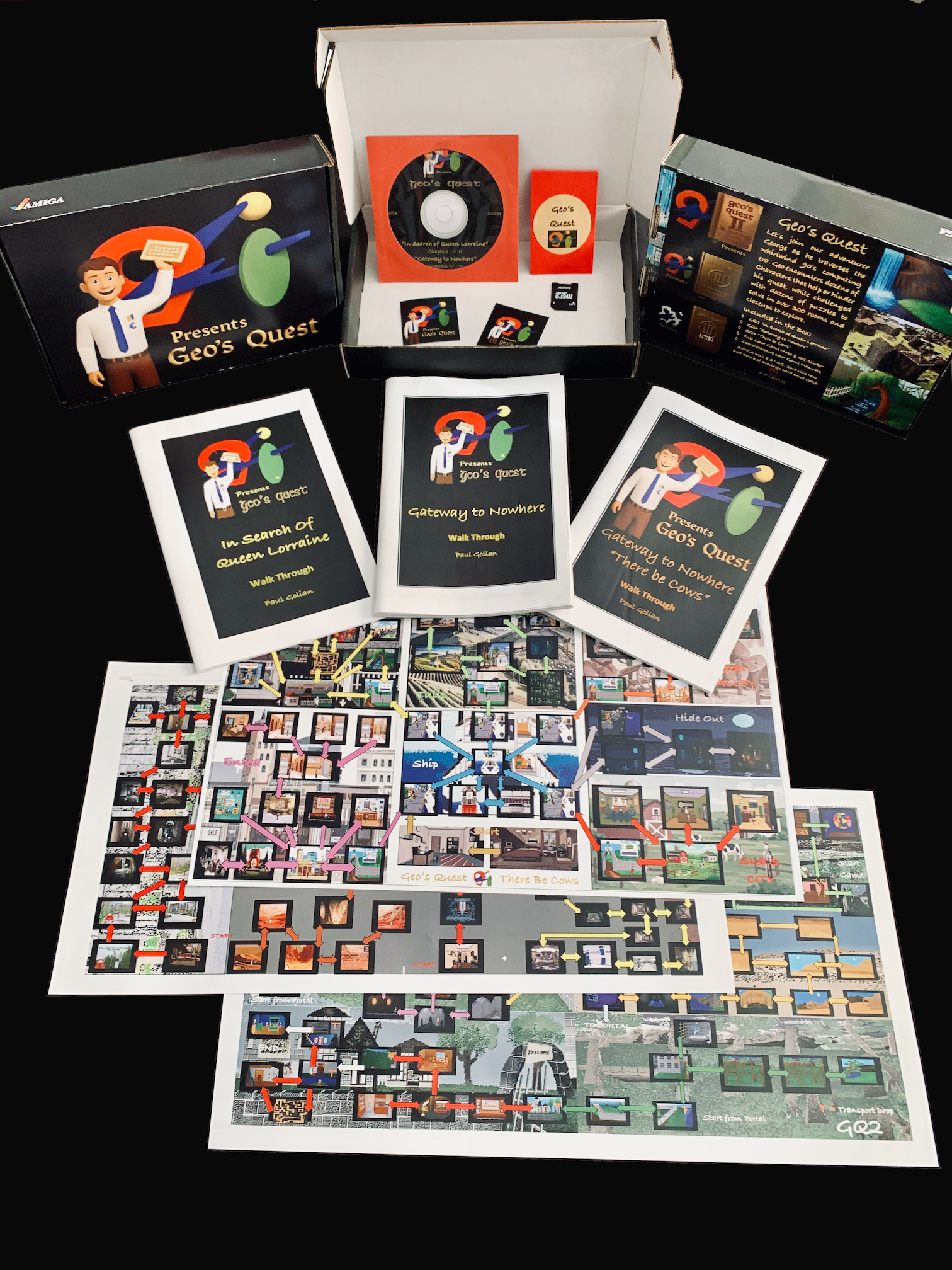 GEO'S QUEST BOX SET including all games on CD & SD with printed manuals and color maps for each game available for only $29.99 (includes shipping) in North America on eBay, available in mainland Europe from Alinea Computer.